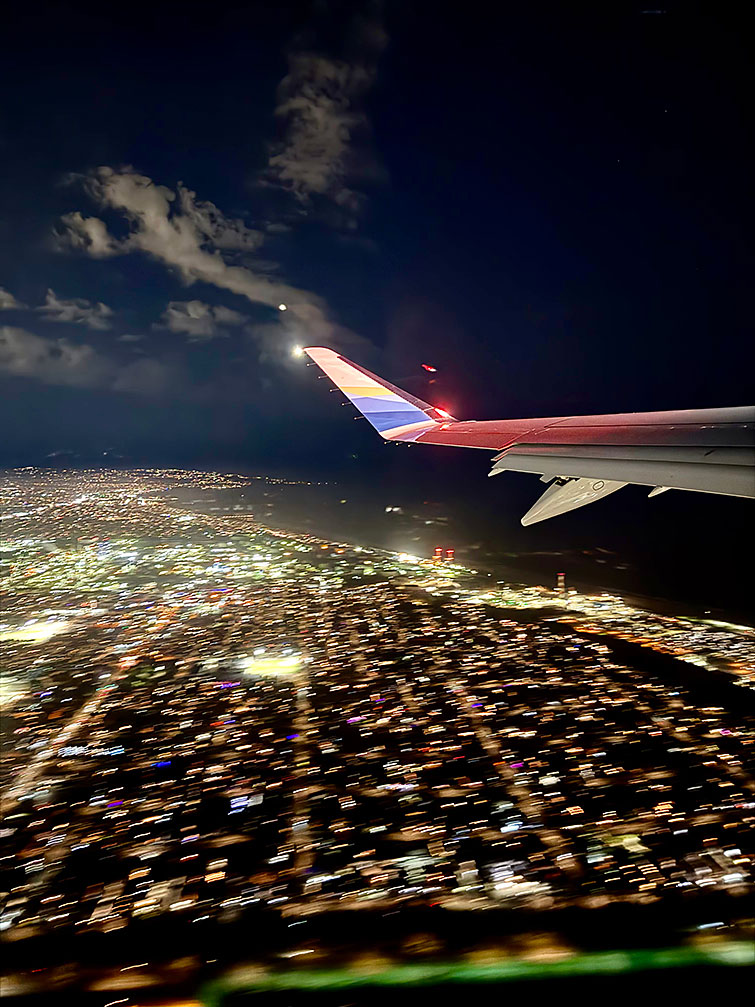 今度は滑走で1時間待たされて、結局定刻より6時間遅れで21時30分にようやく飛び立ちました!!