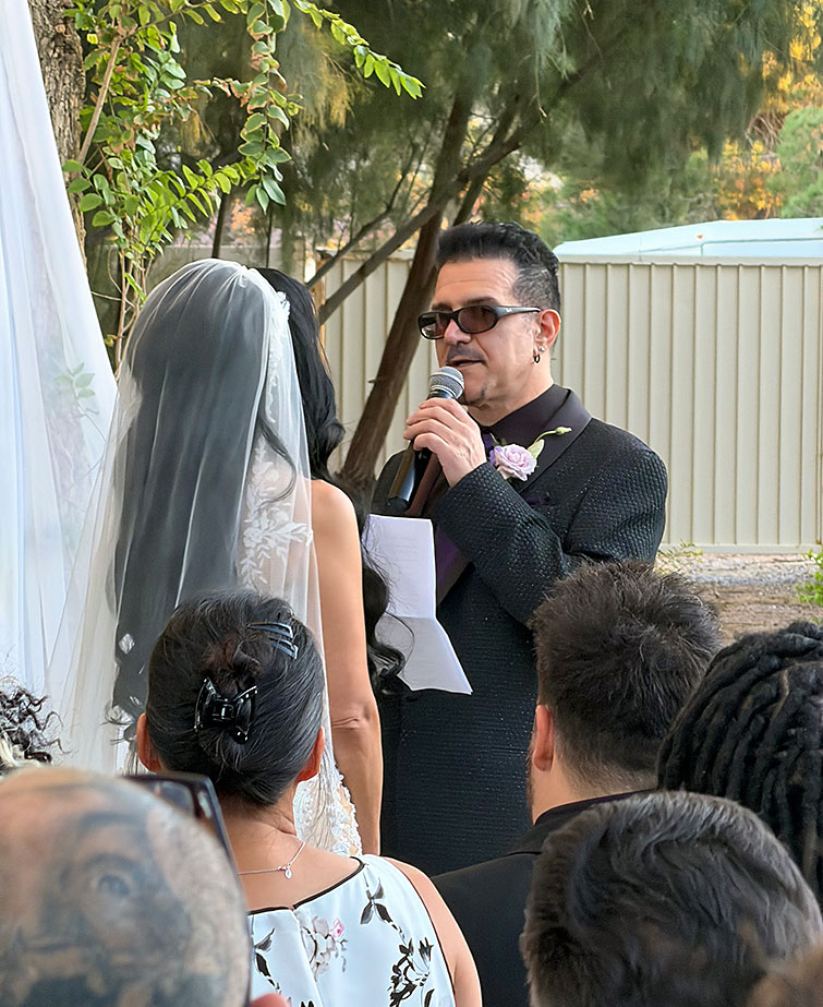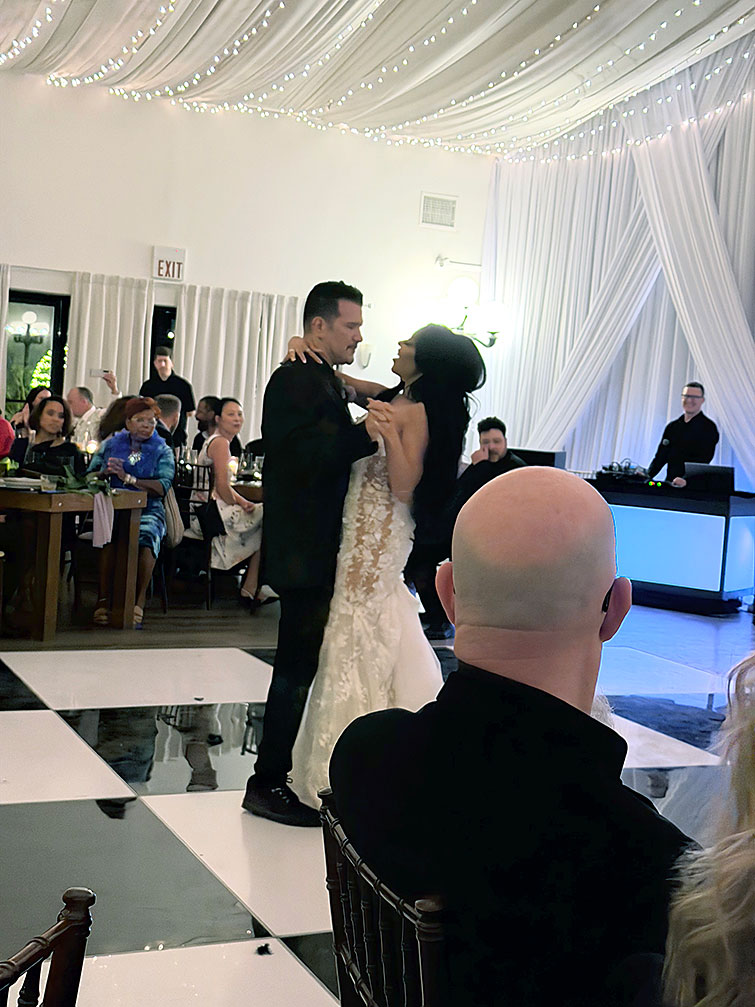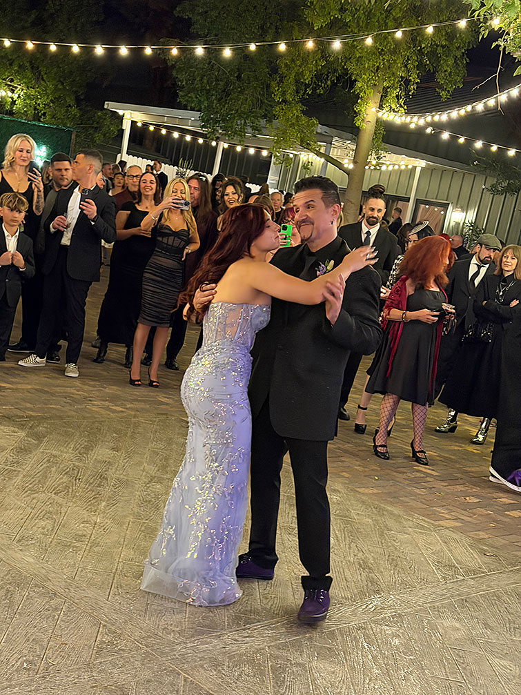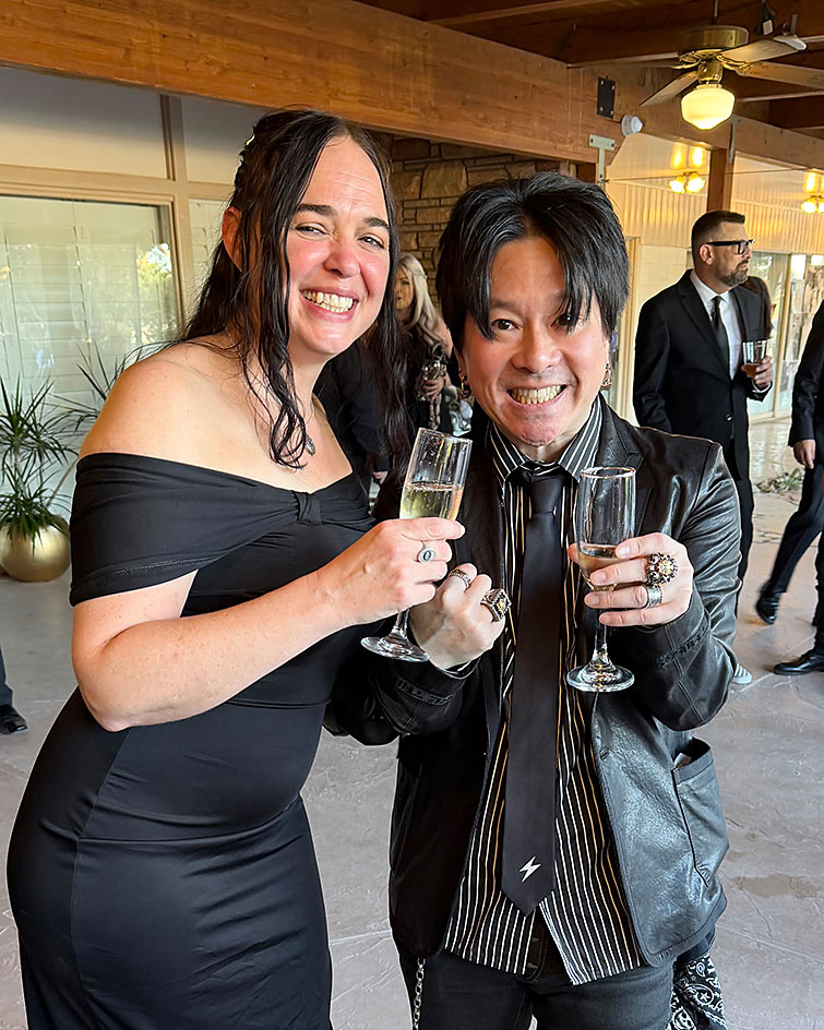なんと新郎新婦入場の前に、ジーン・シモンズ(KISS)が登場!!(汗)