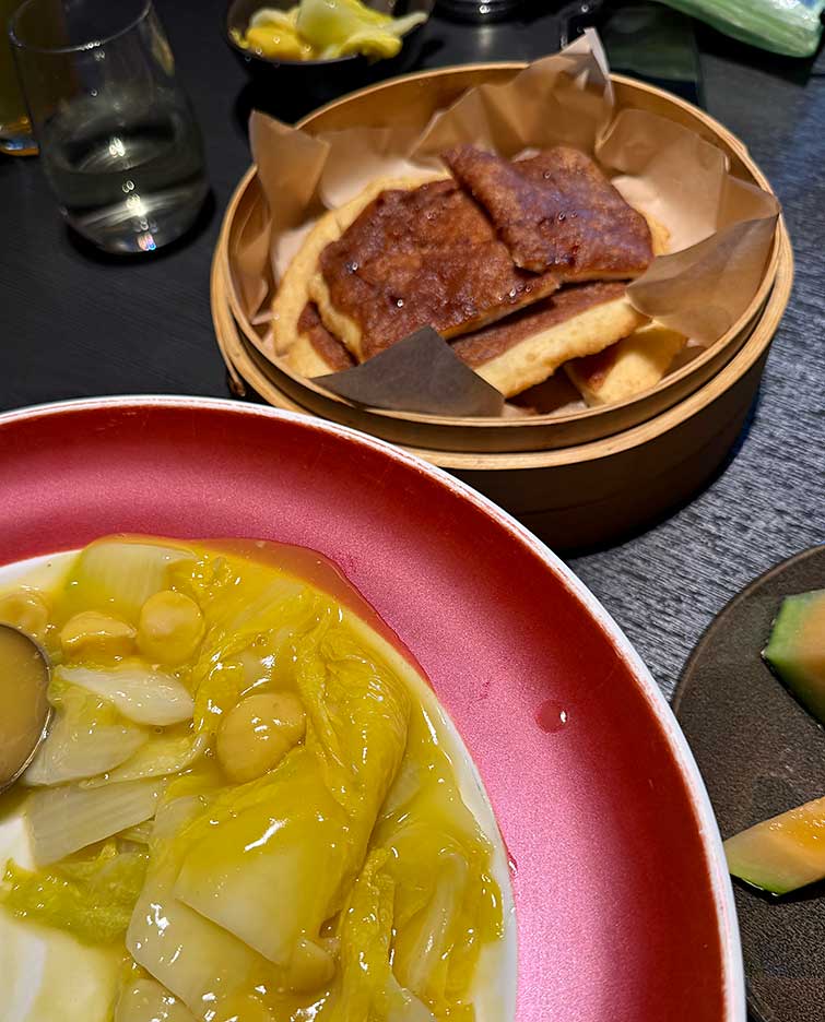 白菜と栗のあんかけと茄子の炒め物に揚げパン!!