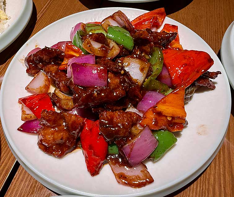 湯引きしたセンマイをゴマだれにつけて頂く北京料理!!