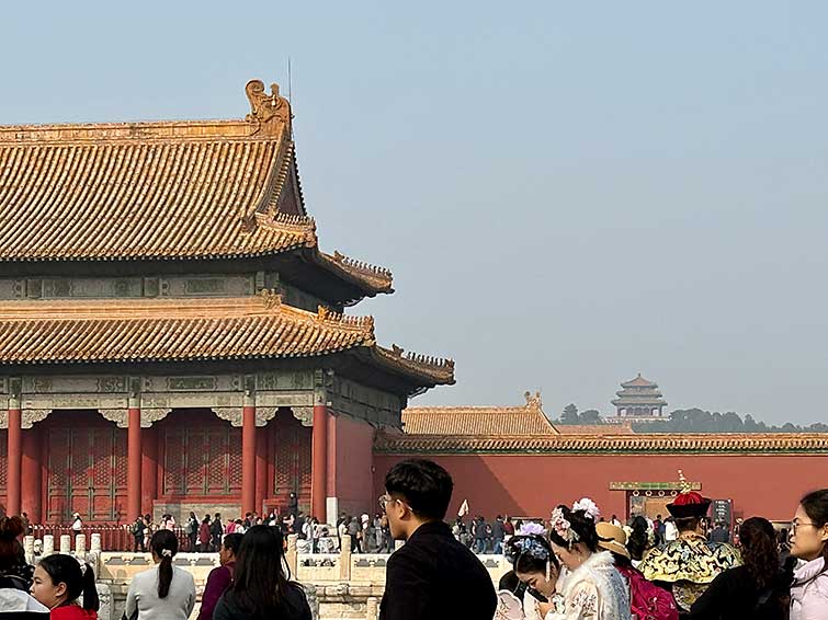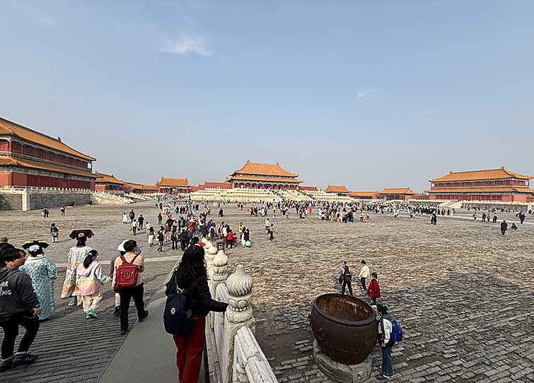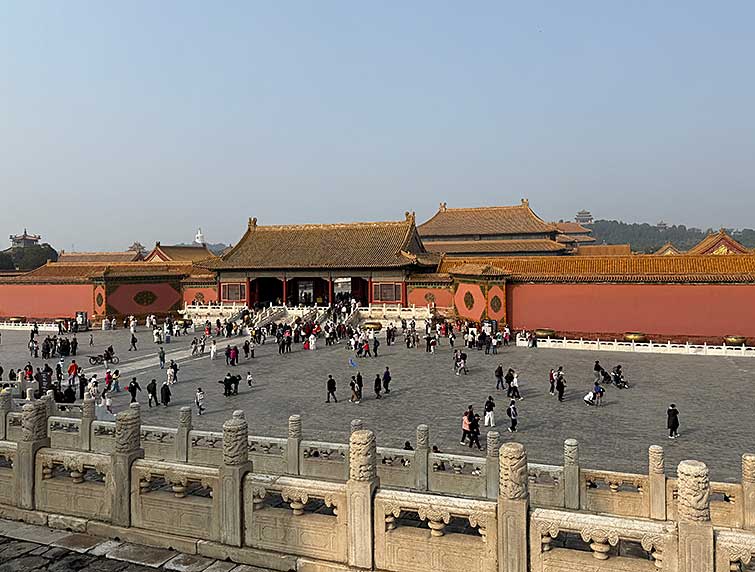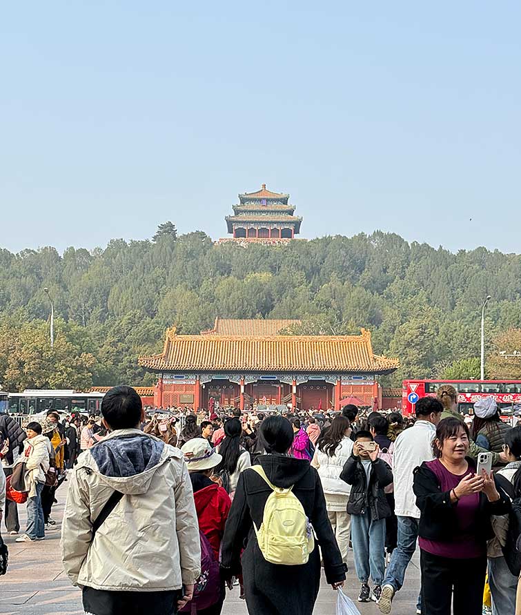 「太和殿」を抜けると遠くに前日登った景山の「万春亭」が!!