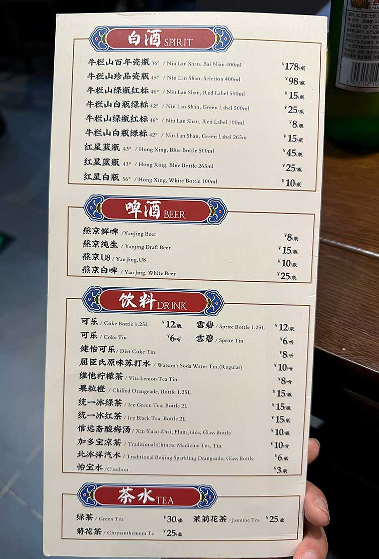 この通りアルコールは「白酒」か「ビール」のみ!!