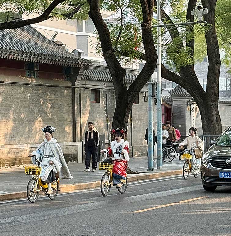 シェアサイクルで爆走する宮廷コスプレ女子!!