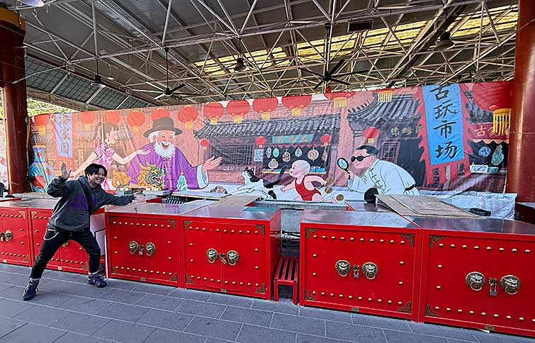 地下道を抜けたところにあったお土産物屋さんで中国国旗をゲットされたフンニャラさん!!