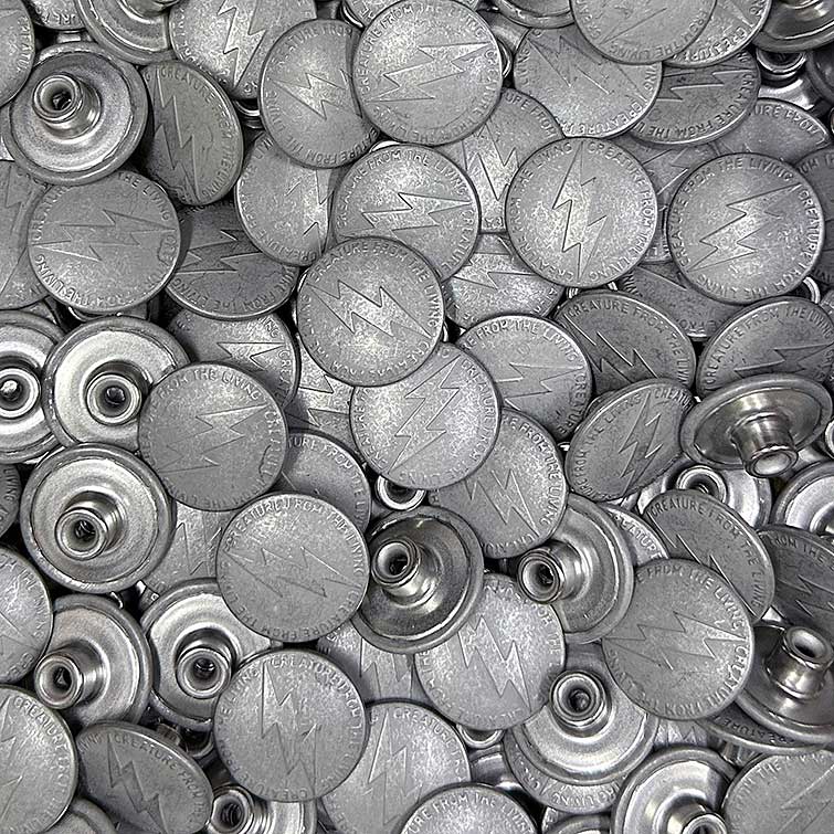 フロントには迫力の19mm「THUNDER STOMP」オリジナル・タックボタンを使用。