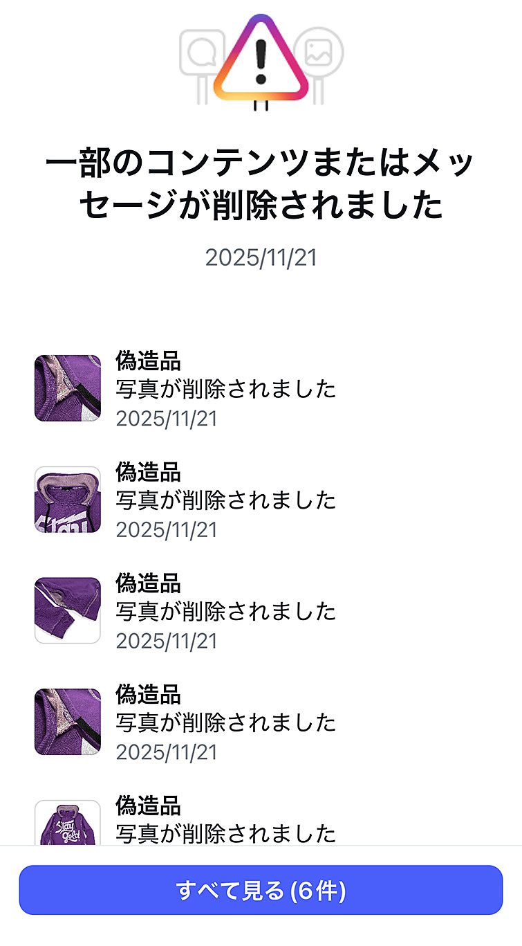 そして未だ復活しないインスタの前「@greed_store」のアカウントですが、今の「@greed_store_official」でも、毎回こうしてポストした写真が削除されます!!