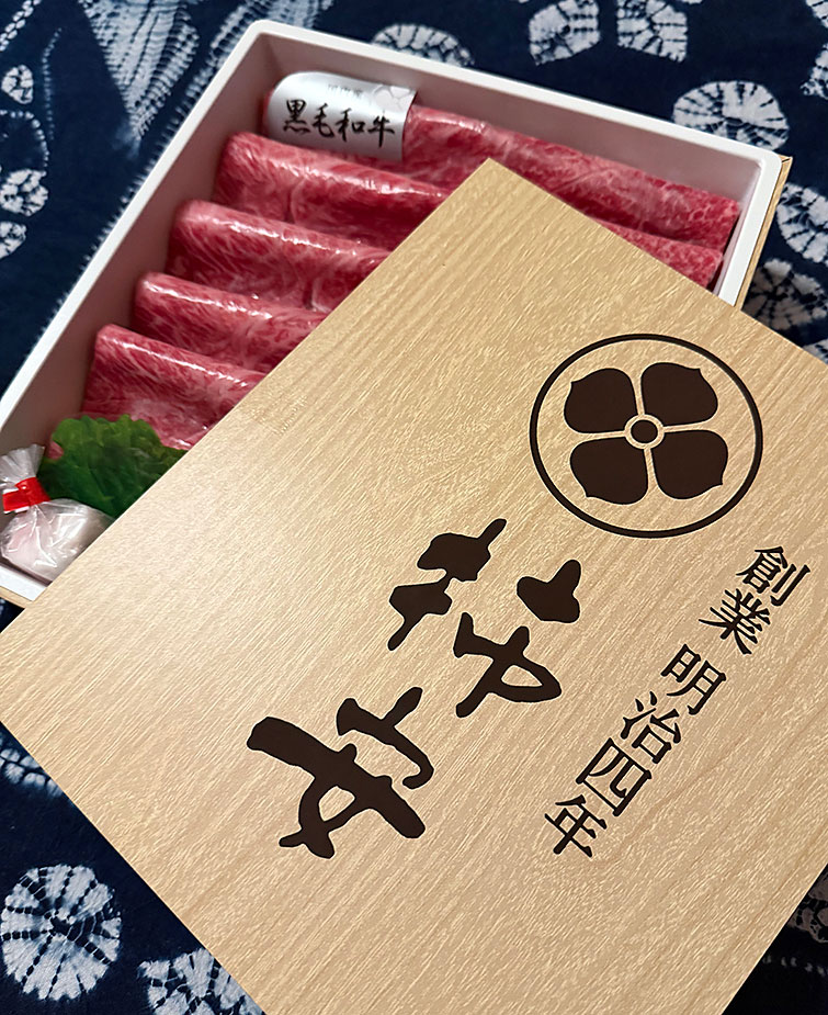 先日中野CREWの廣瀬夫妻より頂いた「柿安すき焼き肉」!!