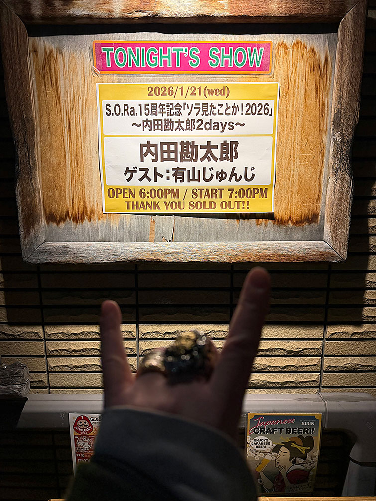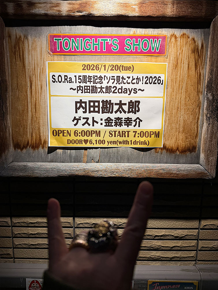 そして翌日は大好きな勘ちゃん(内田勘太郎/憂歌団)の毎年1月恒例の「ソラみたことか! 2026 第一夜」!!
