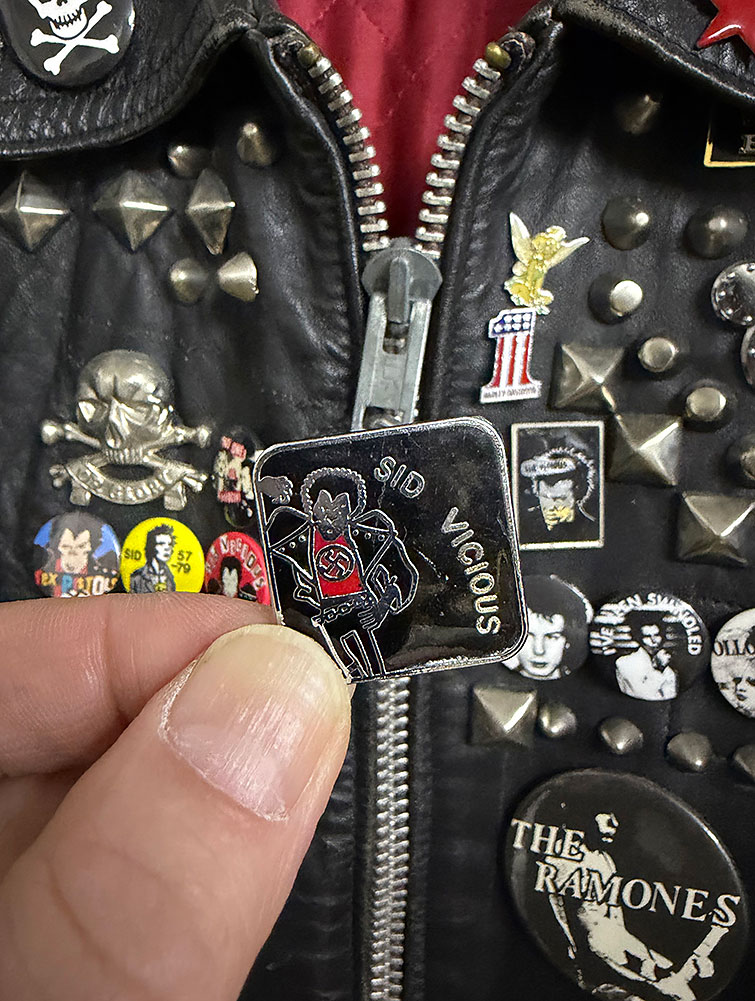 そんなタイミングで久しぶりに着た僕の宝物の「motorhead」ジャンに、かなり前に入手したウルトラ激レアのシドのピンズを付け替えました!!