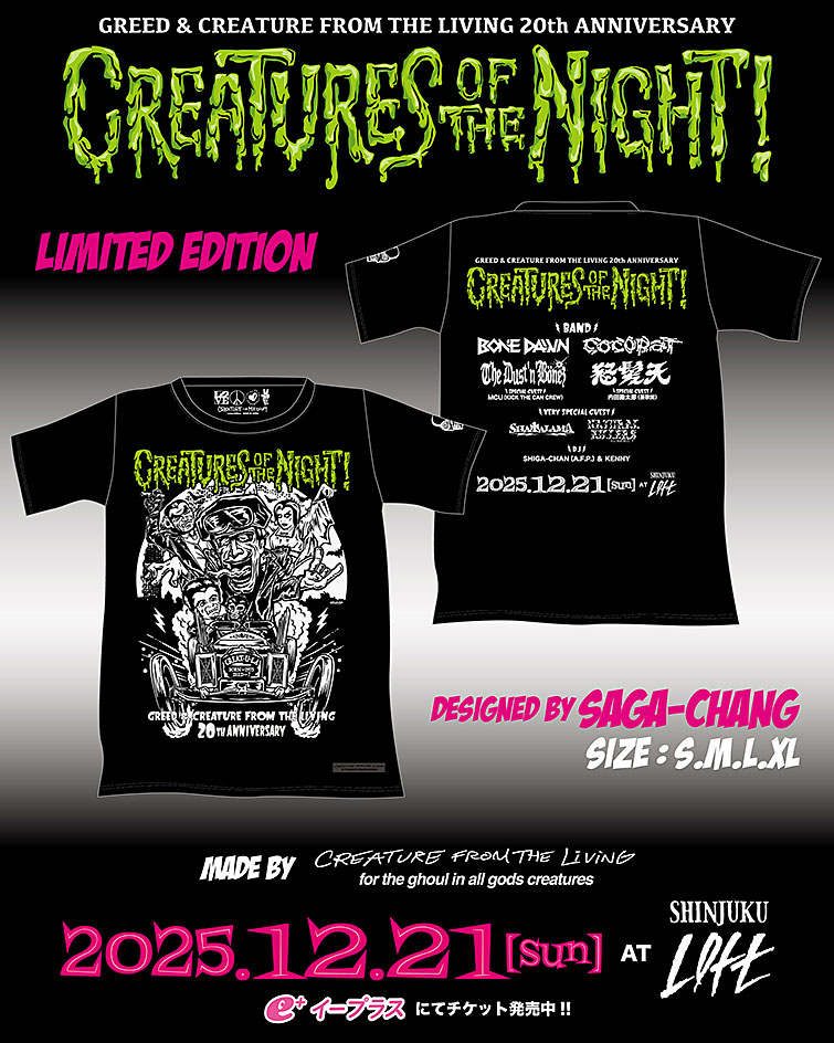 そして「GREED & CREATURE FROM THE LIVING」20年の集大成がいよいよ来週に迫りました!!
