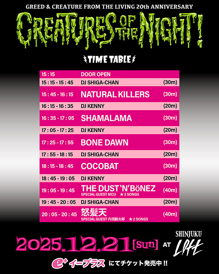 GREED & CREATURE FROM THE LIVING 20th ANNIVERSARY PARTY