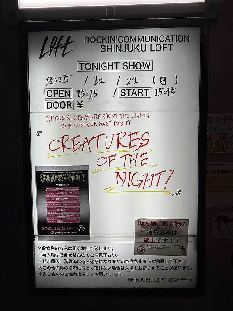来て頂いた皆様、出演頂いた演者の皆様、関係者各位、そして新宿ロフト、心から最大の感謝Death!!