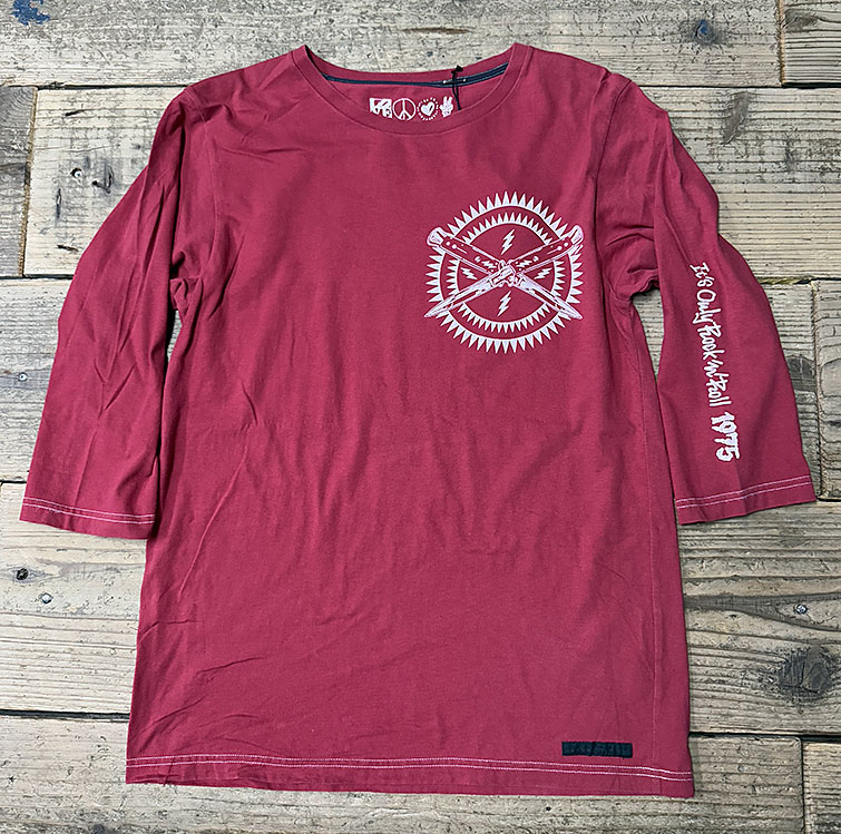 赤いボディーにインパクトあるプリント!! 着こなしの主役になる作品です!!